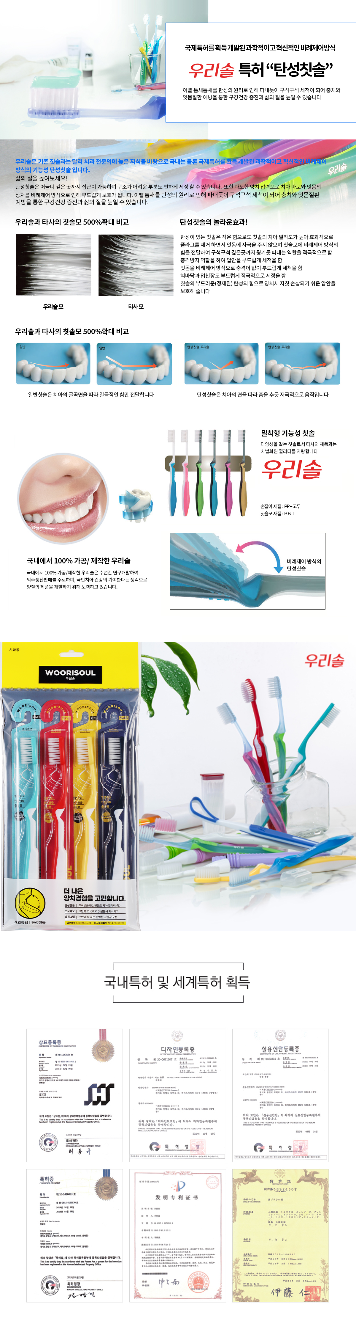 우리솔칫솔은 한국브랜드의 전문 기능성 칫솔로, 잇몸 질환자, 임플란트 사용자, 일반 성인등 다양한 구강 상태를 고려해 개발된 제품입니다.