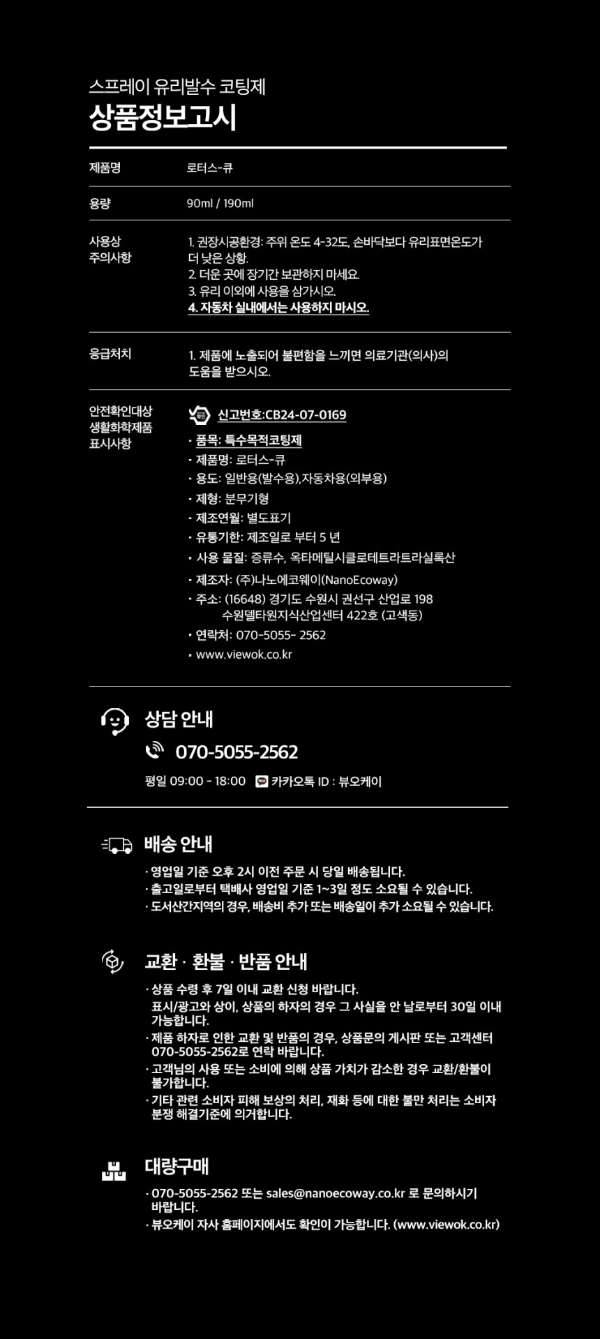 스프레이 유리발수코팅제 LOTUS-Q 190ml