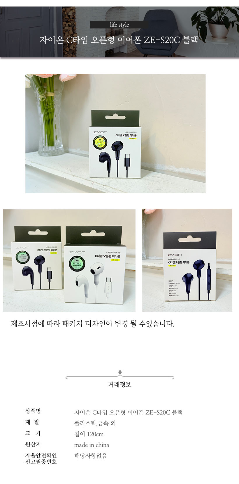 자이온 C타입 오픈형 이어폰 ZE-S20C 블랙