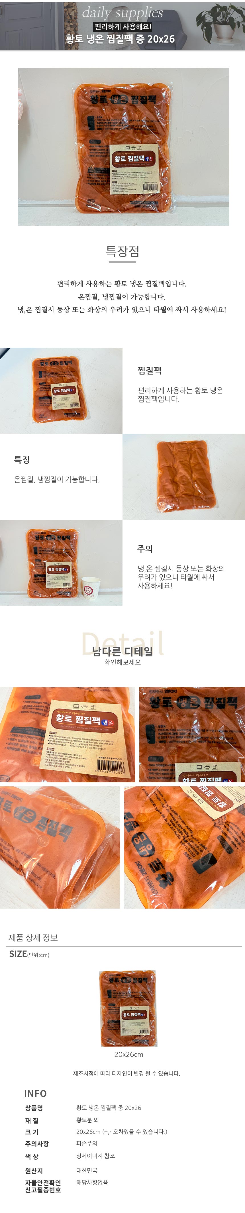 황토 냉온 찜질팩 중 20x26
