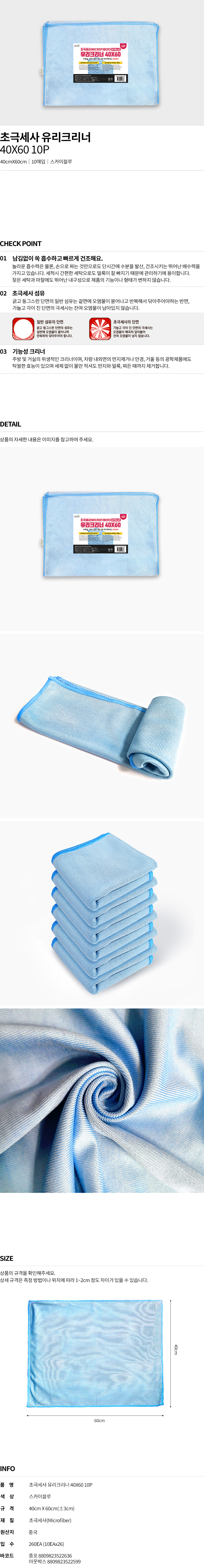 초극세사 유리크리너 (40x60) 스카이블루 10P