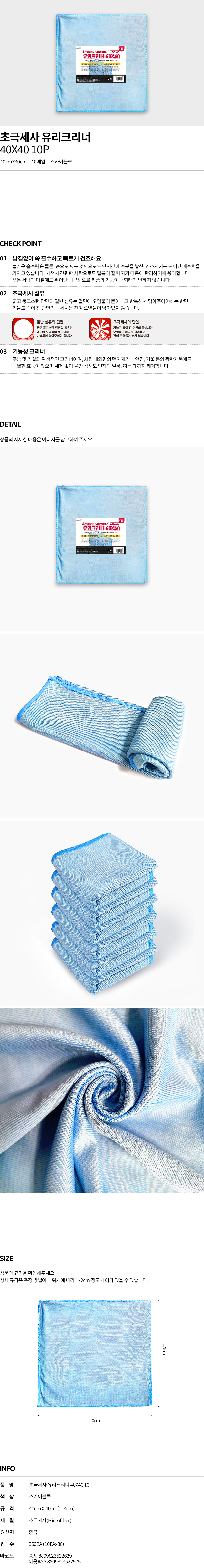 초극세사 유리크리너 (40x40) 스카이블루 10P