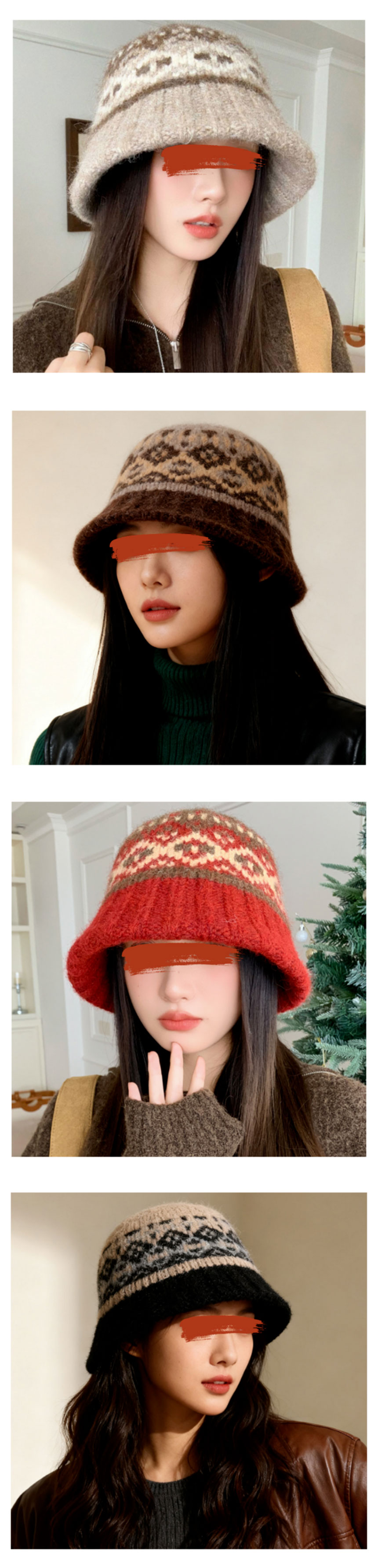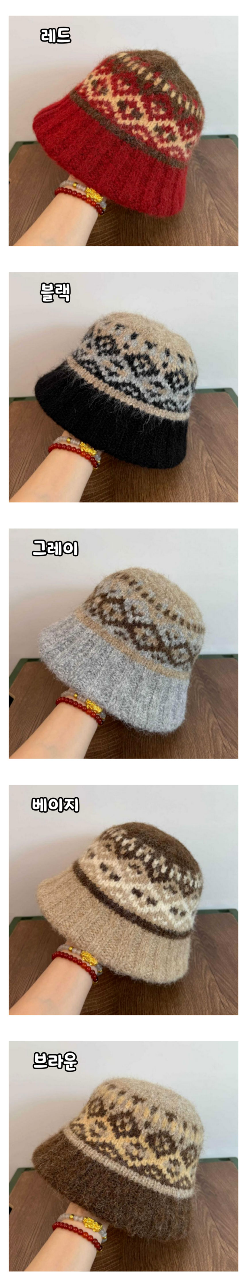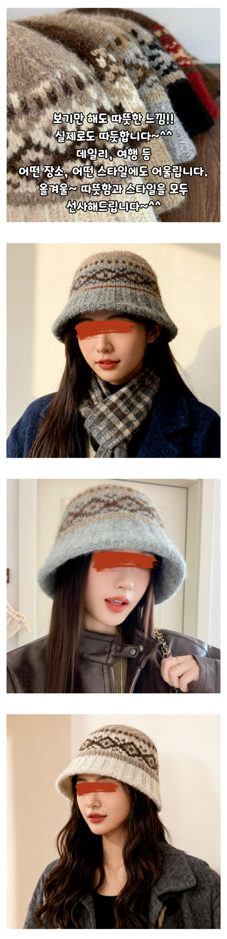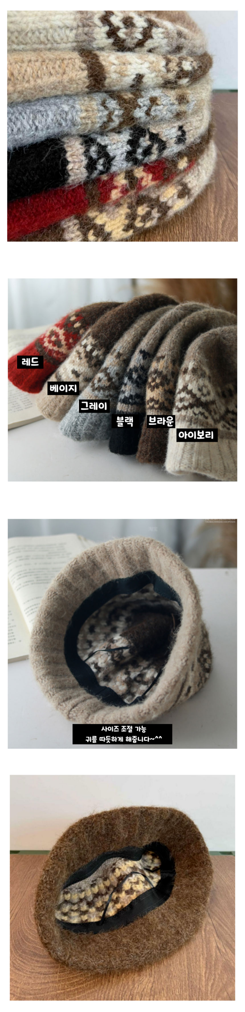 KNPD 앙고라 겨울 털모자 아가일 패턴