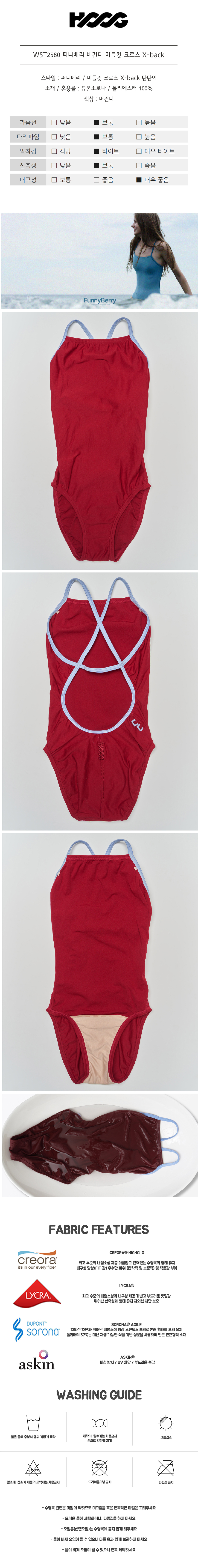 후그 퍼니베리 여성 버건디 미들컷 크로스 X-back WST2580