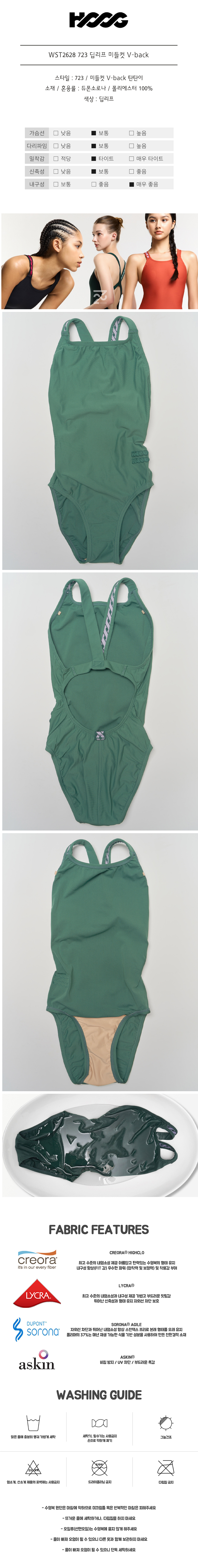 후그 723 여성 딥리프 미들컷 V-back WST2628