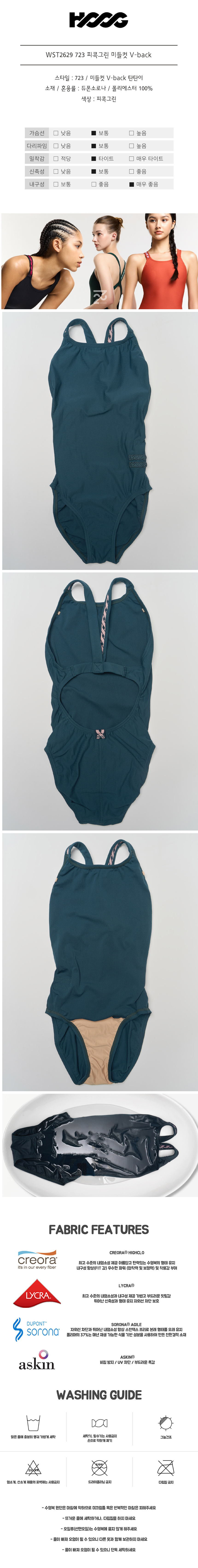 후그 723 여성 피콕그린 미들컷 V-back WST2629
