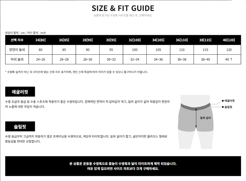 치수 제품 상세정보 참고