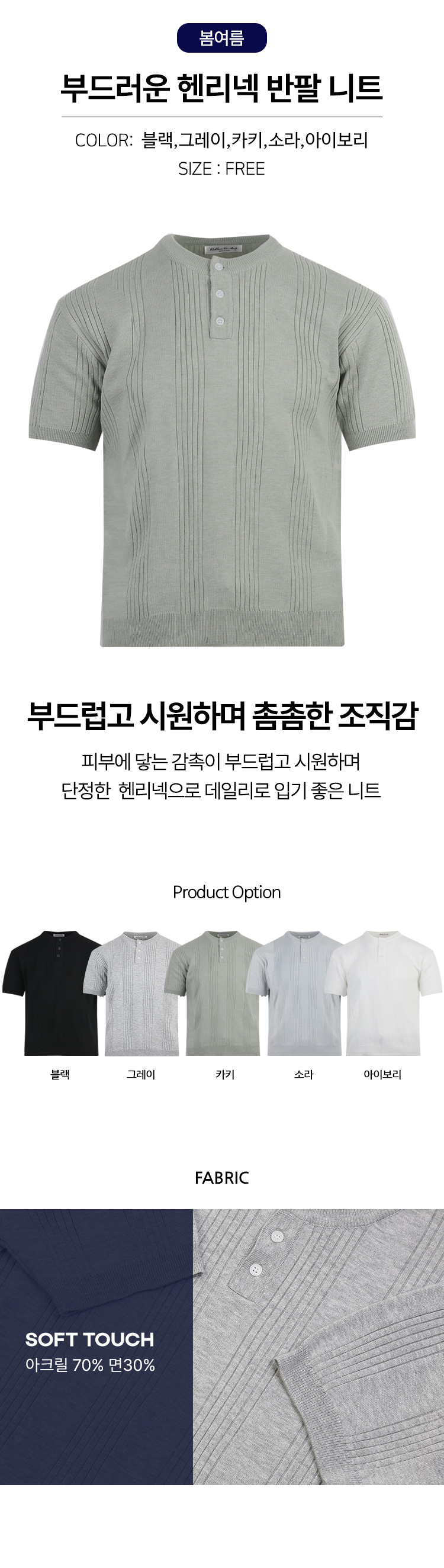 남자 리브드 헨리넥 골지 반팔 니트티 RB-KNH-Q093