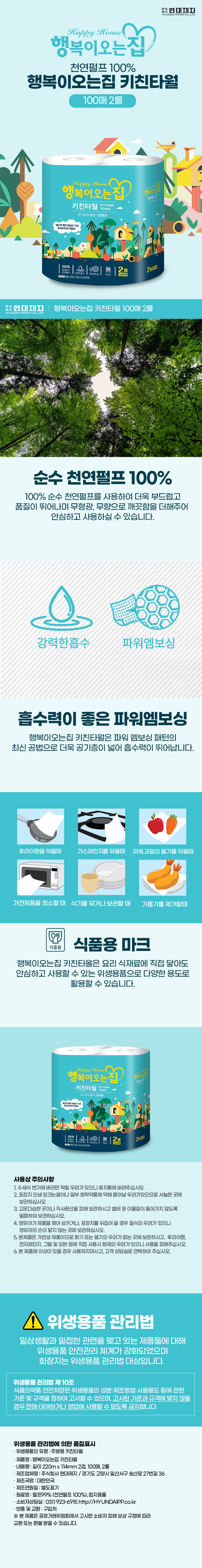 [현대제지] 행복이오는집 키친타올 100매 2롤×3개