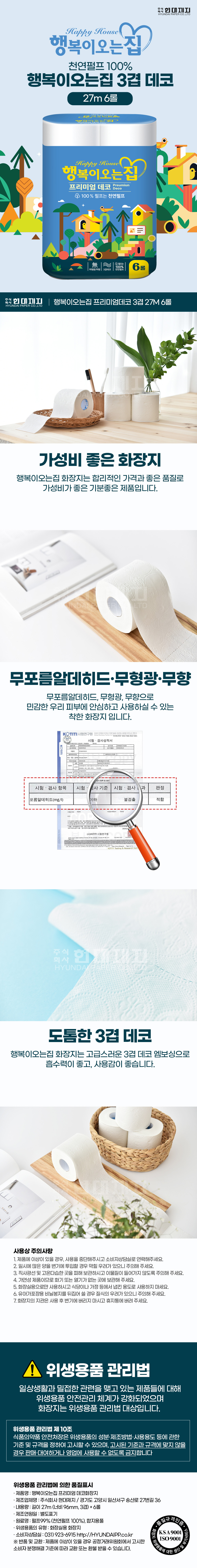 [현대제지] 행복이오는집 화장지 27m 6롤×2개