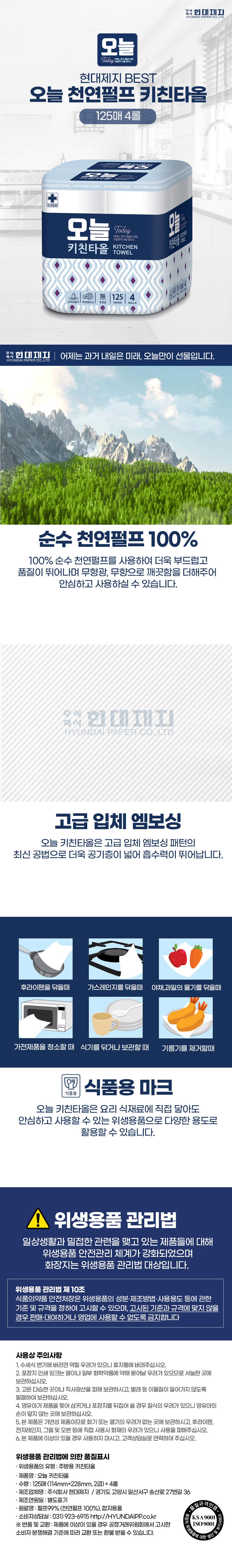 [현대제지] 오늘 키친타올 125매 4롤×2개