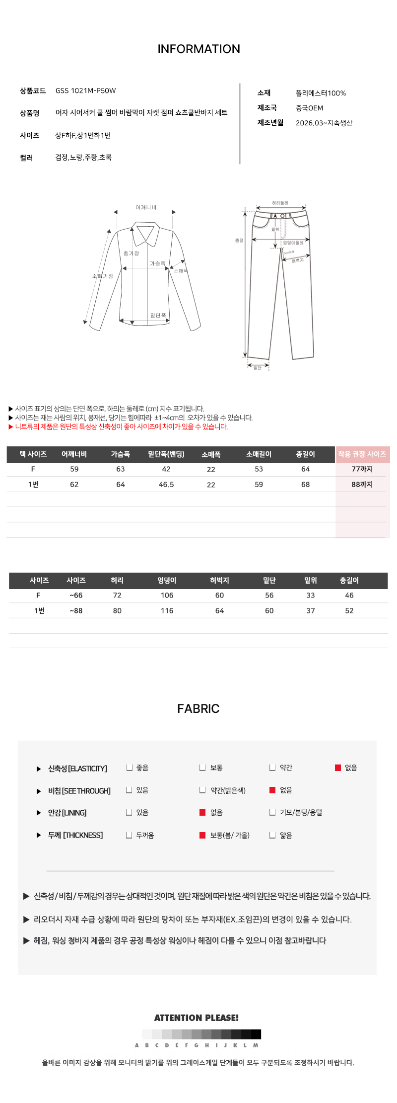 여자 쿨 썸머 시어서커 바람막이 반바지 세트 DJW-SETS-SGSS1021WP50W