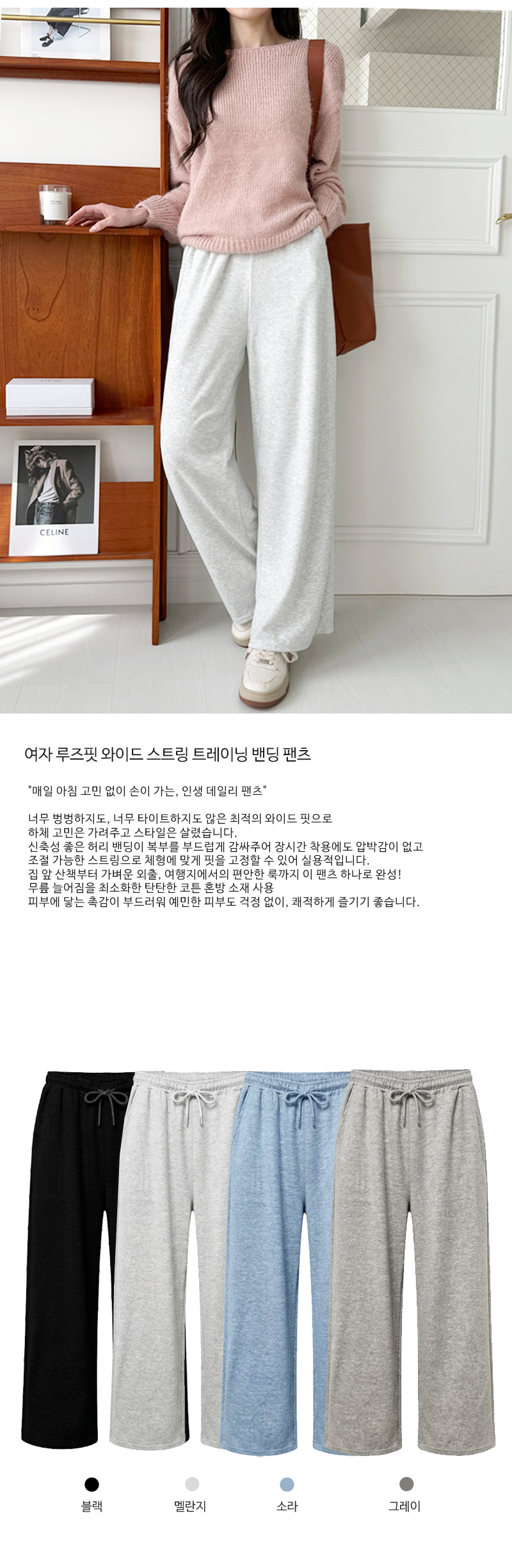 여자 와이드 스트링 루즈핏 트레이닝 밴딩 팬츠 DJW-PTA-SACC2005W