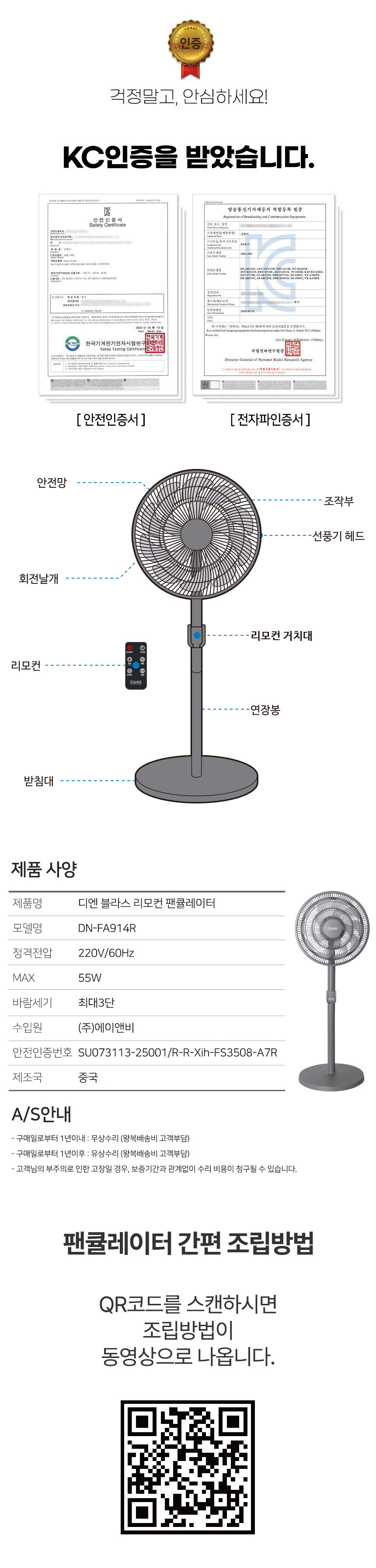 [디엔] 블라스 리모컨 팬큘레이터 DN-FA914R