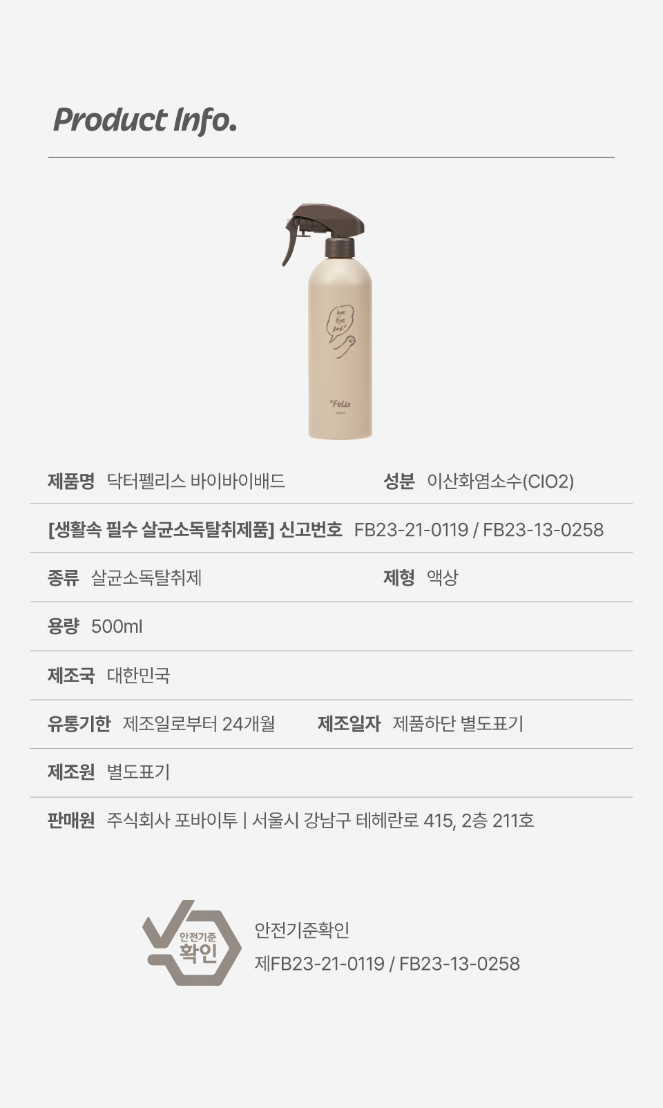 [닥터펠리스] 고양이 n 모래 살균 탈취제 바이바이배드 500ml