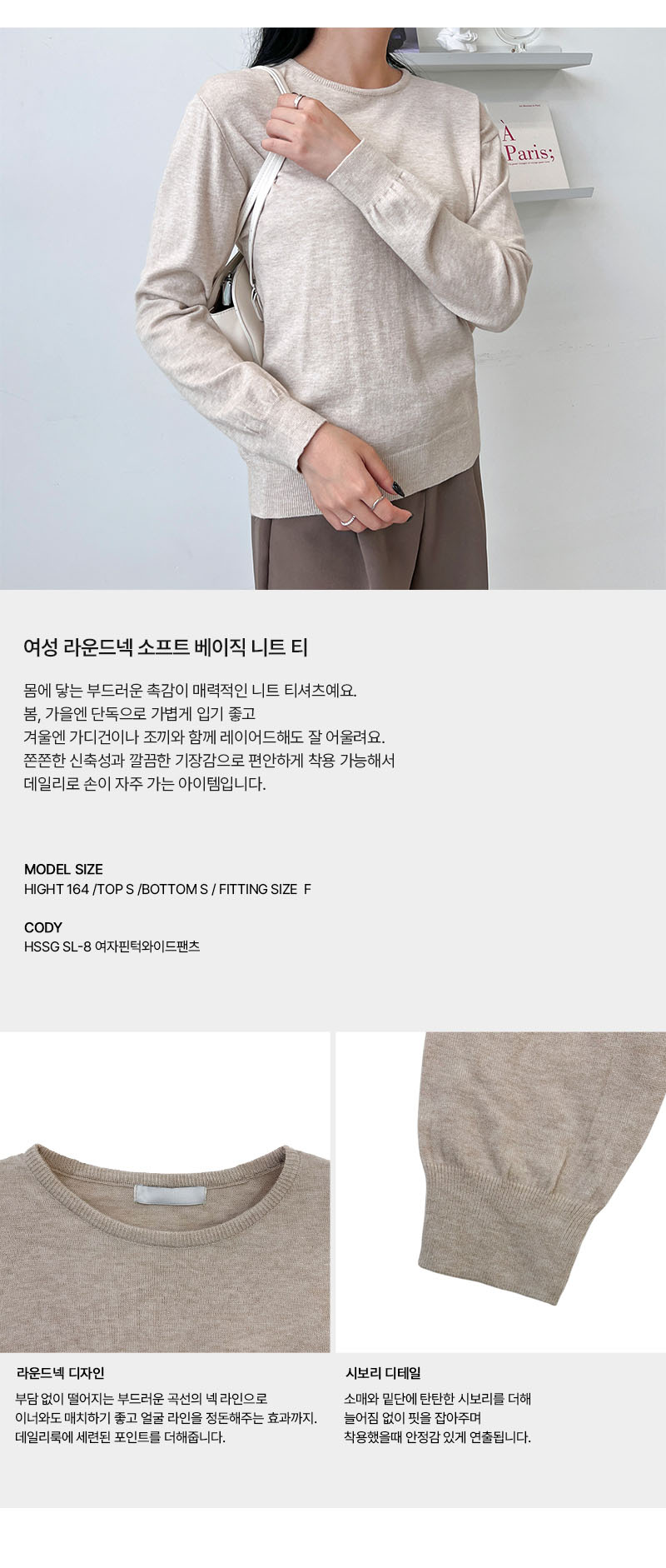 여자 라운드 부드러운 기본 니트티 DJW-KNA-SCAT1096