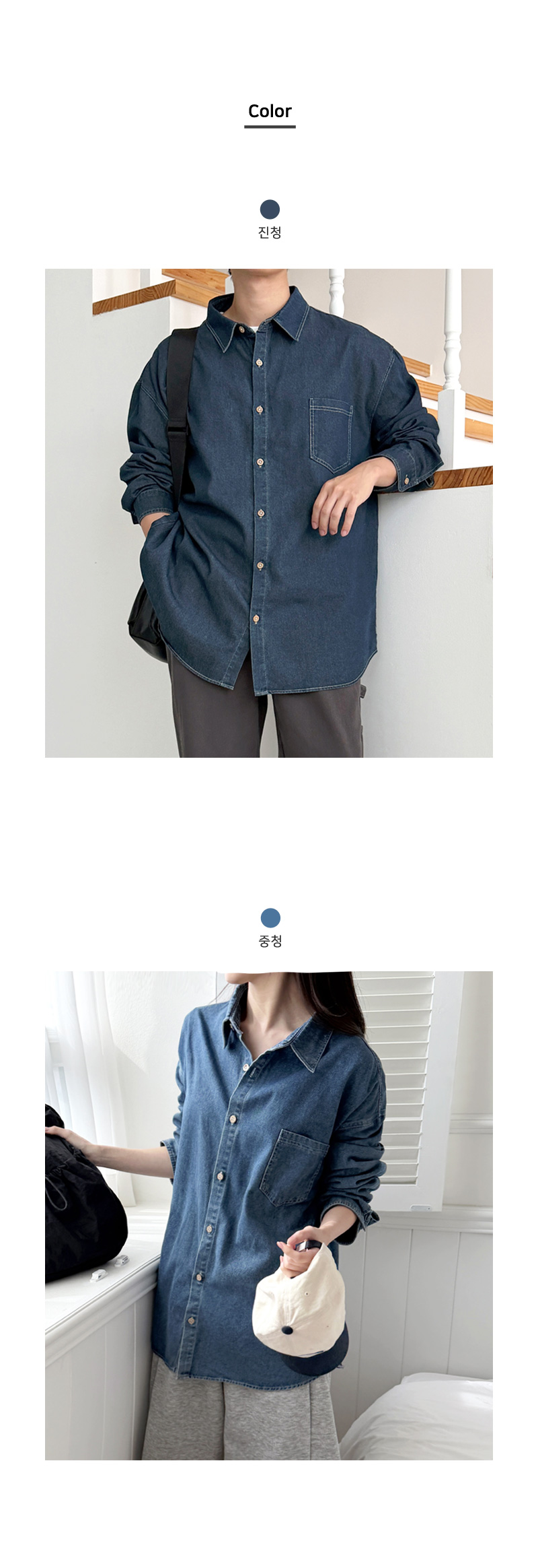 여자 오버핏 데님 셔츠 청남방 DJW-SHA-SGQQSF1049W