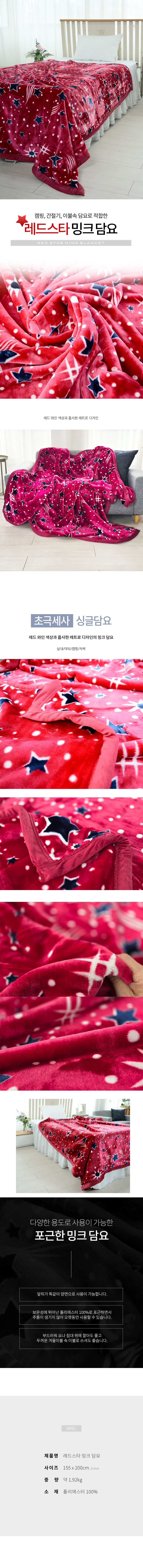 레드스타 밍크 싱글 이불담요 155x200