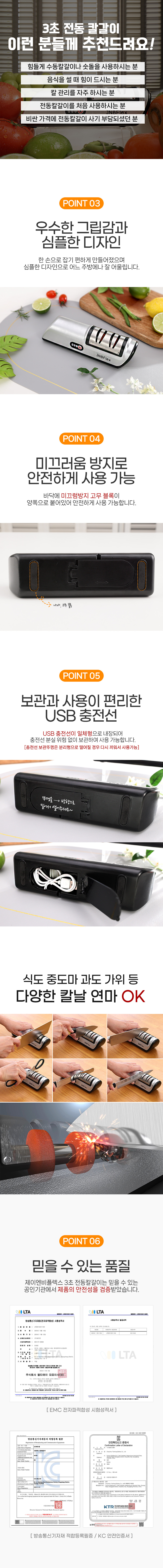 제이앤비 플렉스 3초 전동 칼갈이 자동 숫돌 충전식 가정용 칼갈이기계 연마기
