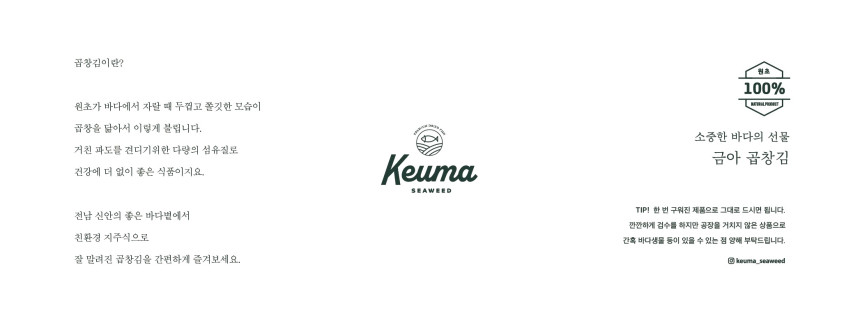 ✅화입(열처리)수분을 빼는 작업을 해 구운김처럼 바삭하기 때문에 바로 섭취가능