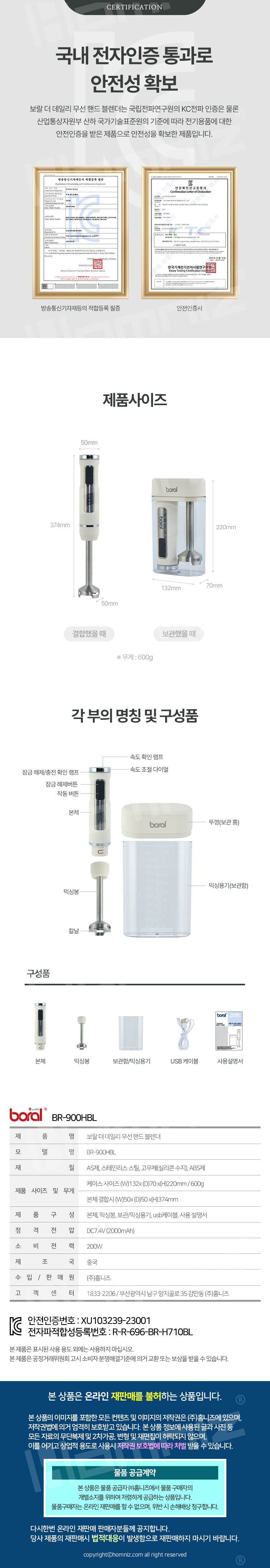 [오픈마켓] 보랄 더 데일리 무선 핸드 블랜더 BR-900HBL
