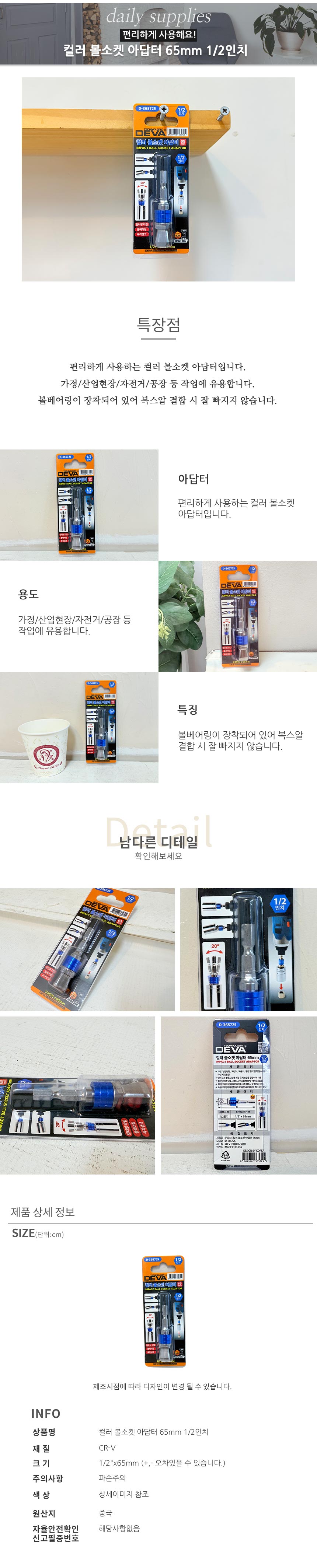 컬러 볼소켓 아답터 65mm 1/2in