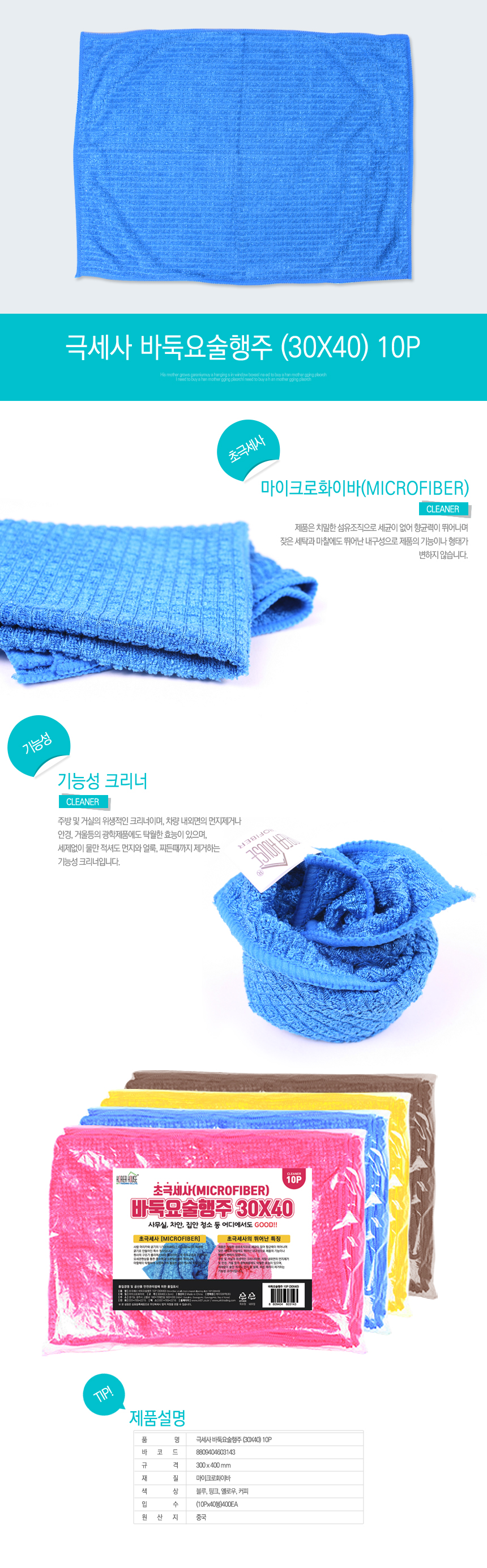 초극세사 바둑요술행주(30x40) 옐로우 10P
