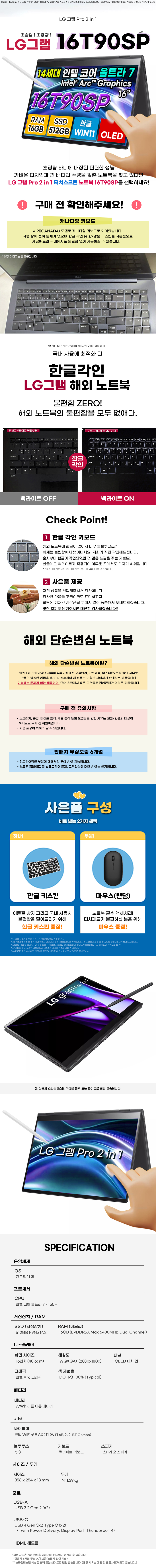 LG그램Pro360 16Z90SP-KA75 14세대 울트라7 16GB 512GB 터치 OLED 노트북