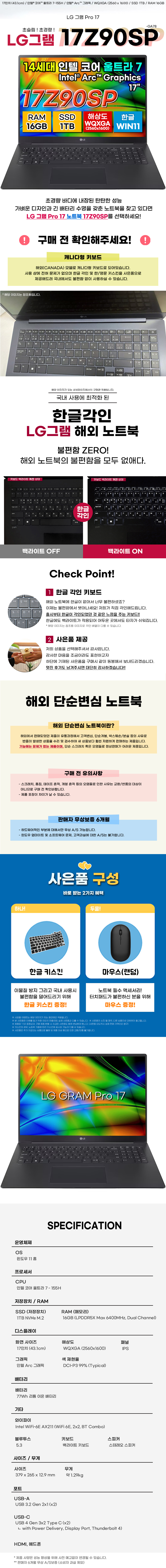LG그램Pro 17Z90SP-GA78 14세대 울트라7 16GB 1TB 노트북