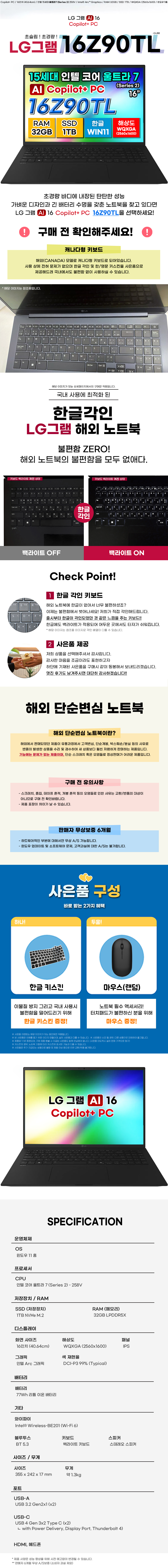 LG그램 16Z90TL-GU88 15세대 울트라7 32GB 1TB Copilot+PC 노트북
