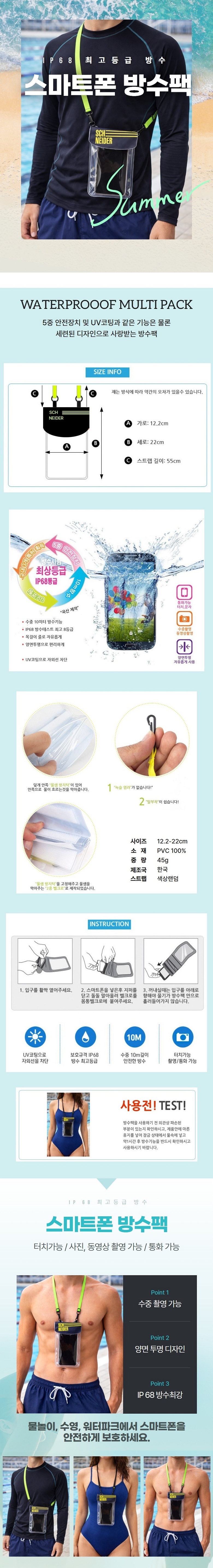 휴대폰 방수팩 IP68 스마트폰 방수케이스 물놀이 수영 목걸이형 투명팩