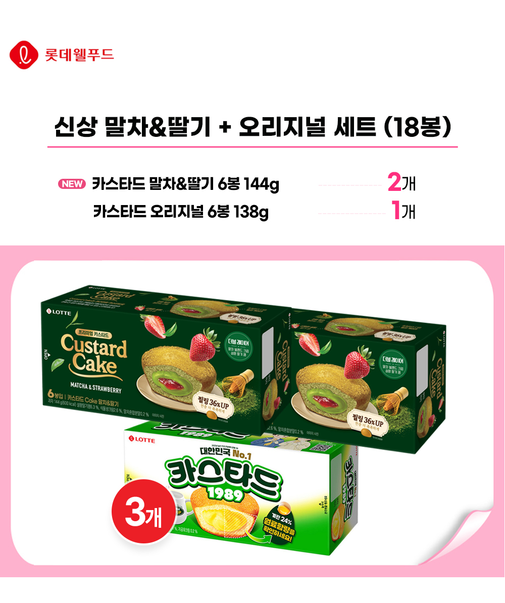 [롯데] 카스타드 신상 말차&딸기 2박스 + 오리지널 1박스 세트 (총 18봉)
