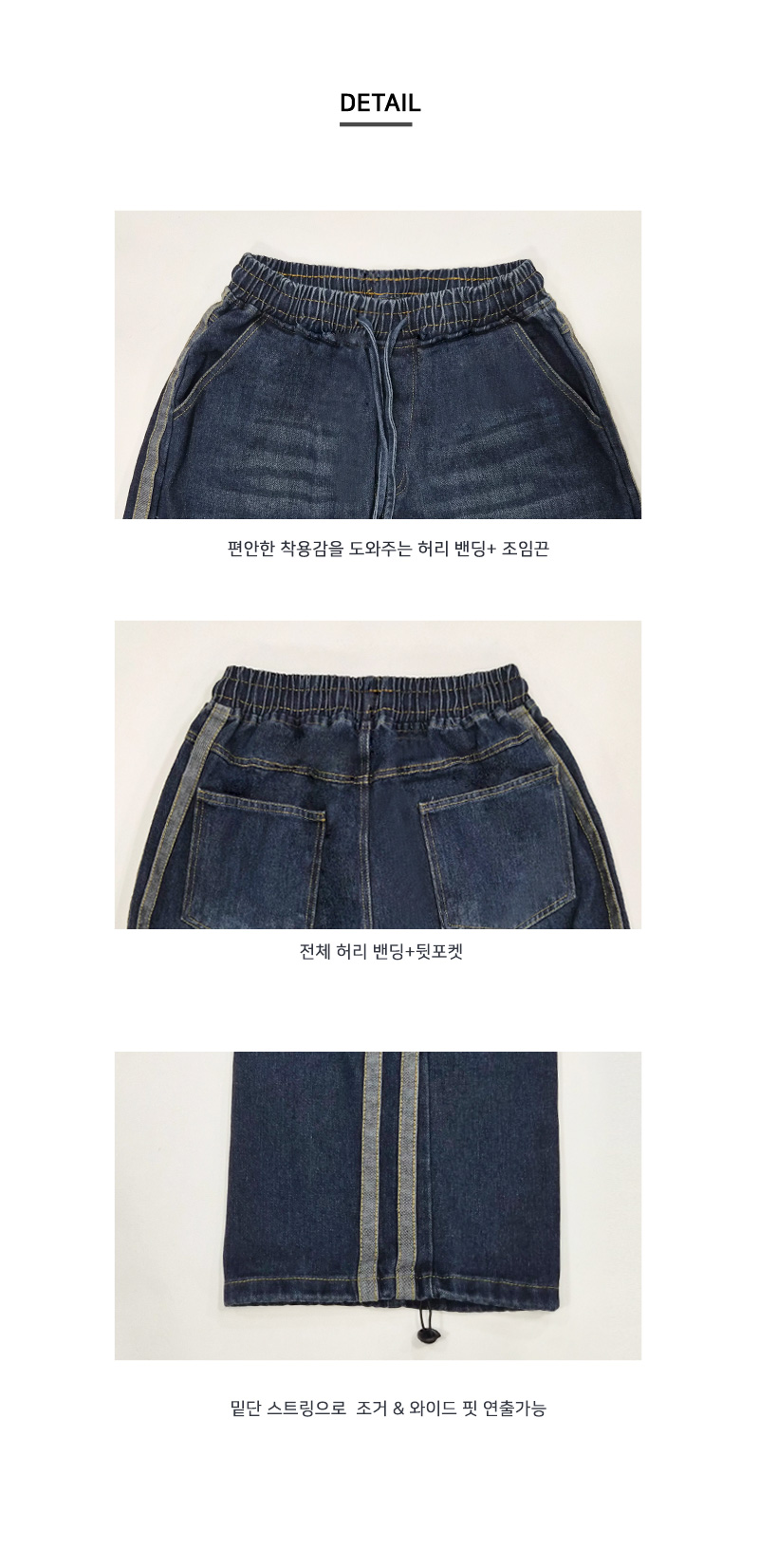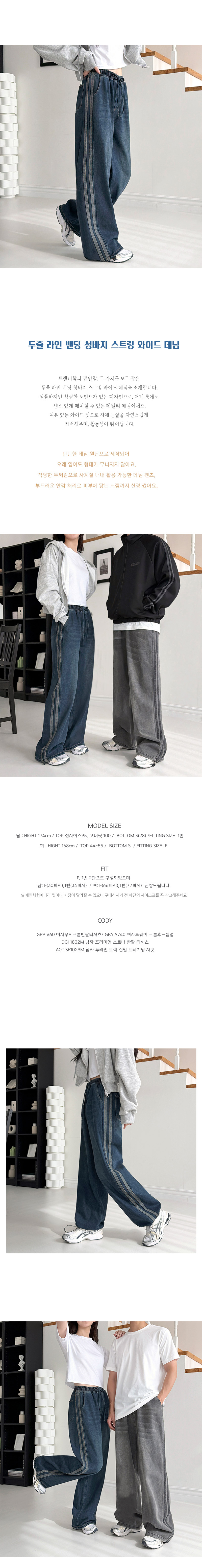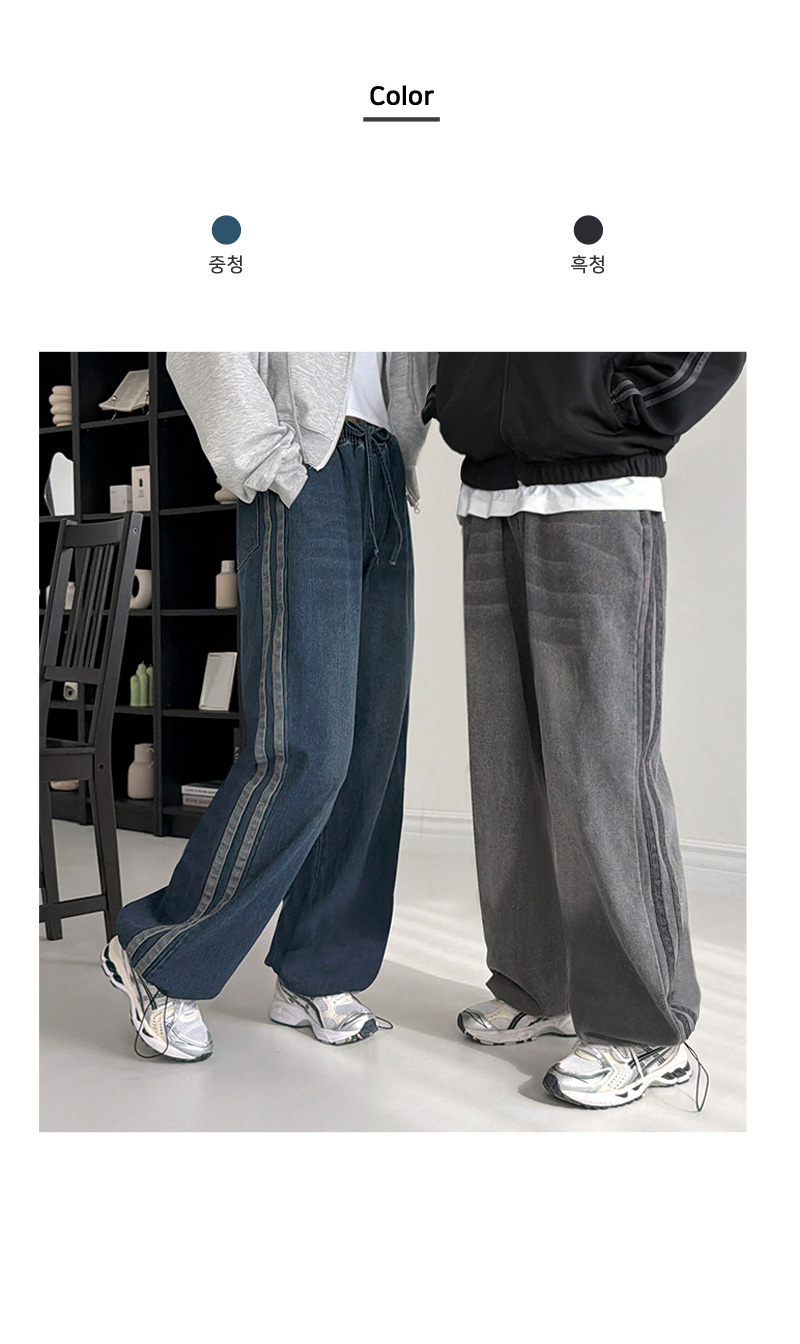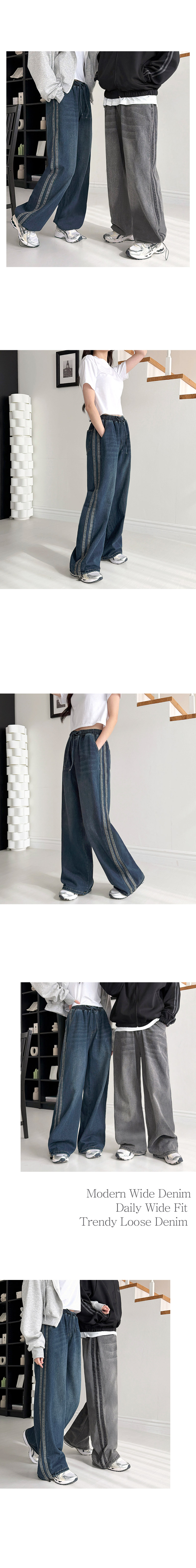 여자 두줄 라인 밴딩 청바지 스트링 와이드 데님 DJW-JEA-SGAASF1047W