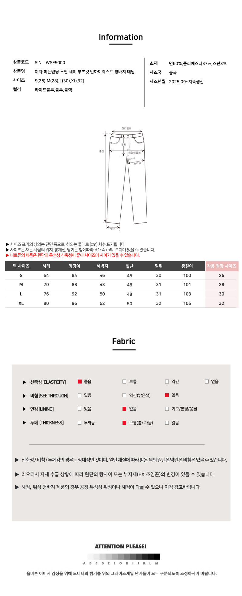 여자 히든밴딩 부츠컷 반하이웨스트 데님 DJW-JEA-S2LSINWSF50001